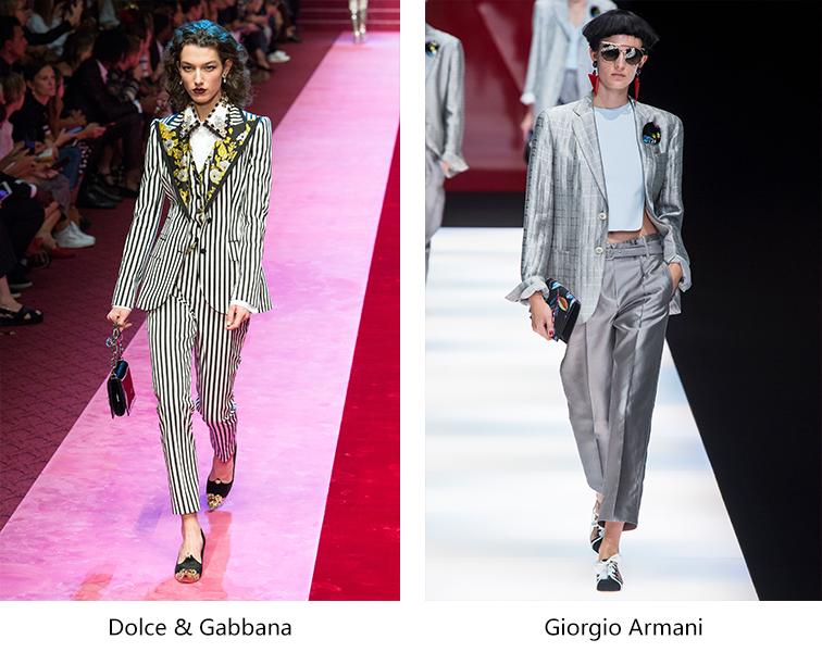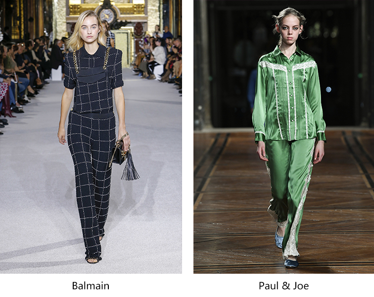 亚洲零售商纷纷从欧洲市场汲取设计灵感,尤其是套装组合和睡衣风格在17年渗入亚洲市场,并预计在18年继续流行。从T台发布的假日系列、春夏系列中可看出套装趋势所占比重不可小视。不论是睡衣套装、运动套装还是正式的西装套装都散发出一股强大的气场,彰显个性。