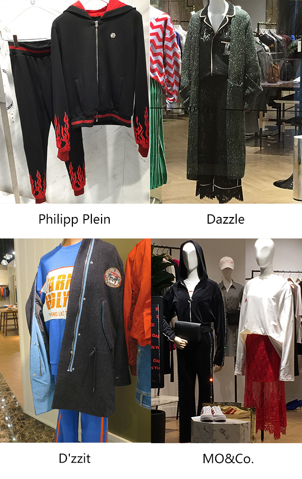 在零售市场中Mo & Co带来的新式复古风丝绒套装是最前卫的时尚演绎;运动条纹则贯穿了D’zzit 和Five Plus的套装造型。各种各样的睡衣套装也现身Dazzle 和 Mo & Co实体店铺,成为满足消费者高雅现代品味的另一种选择。