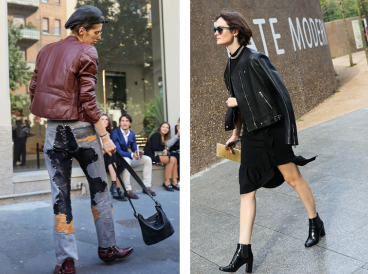 飞行员夹克统治市场多季之后,主打环保PU革的机车夹克回归亚洲。平滑流畅、抛光和哑光的皮革以及显著的轮廓更显高端,成为春季外套的最理想选择。版型沿袭经典保持简约,除了最关键的黑色,各种粉色、拼接色,包括金属色都能让机车夹克更加时尚前卫。
