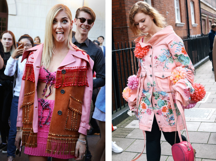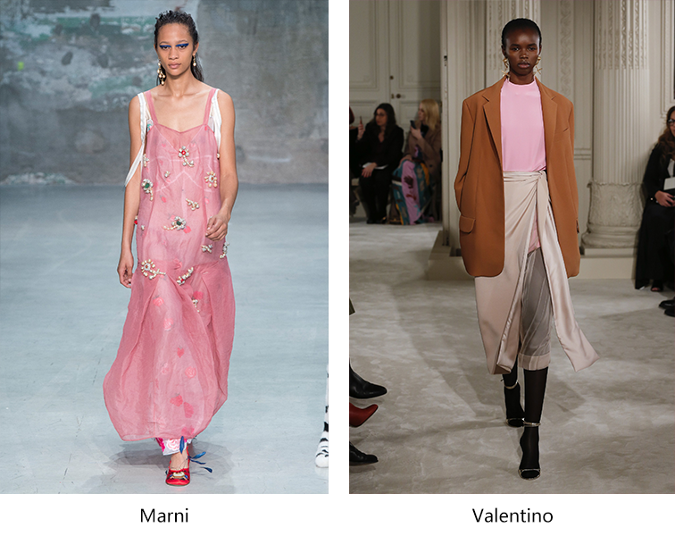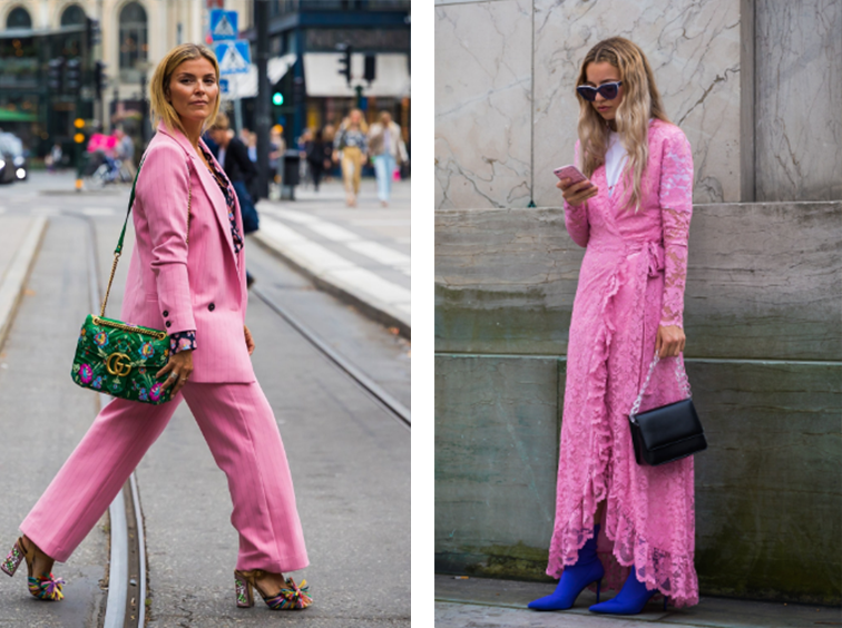 在千禧粉获得成功之后,兼具商业感和时尚度的泡泡糖色系成为翻新针织衫和配饰新品的关键。不论是各大品牌发布的T台中还是时装周的街拍中,泡泡糖粉都是不可或缺的一种温柔色彩。将这种朦胧色调与轻质雪纺绸和飘逸丝绸搭配更有助于打造柔美、极具女人味的仙女造型。