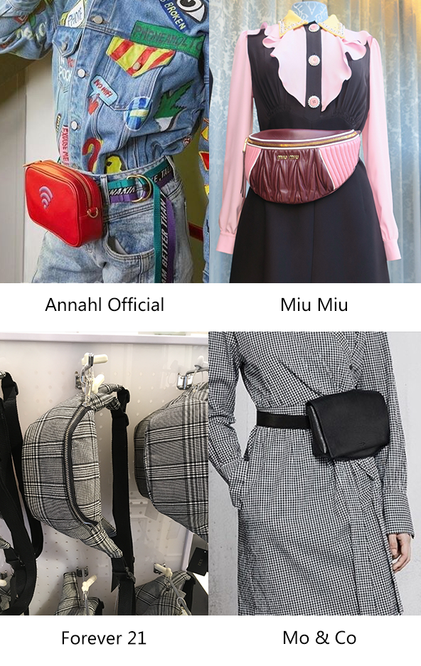 腰包在本季成为亚洲零售市场的必备单品。本土和国际品牌都在跃跃欲试,Moussy在Instagram上宣布其银色腰肩两用背包后期还会补货;拥有100万粉丝的Irene Kim在社交平台上也推广了Miu Miu的腰包。