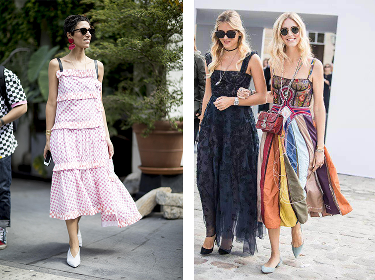 茶会连衣裙风靡了整个时尚圈,是2017/18秋冬的关键单品,荷叶边细节令造型更为时尚。2018春夏,该款式返璞归真,采用40年代风格的的褶裥或缝摺细节,塑造柔美俏皮的新款造型。