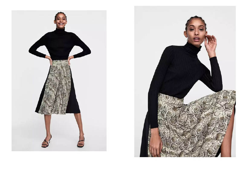 ZARA蛇纹拼接裙